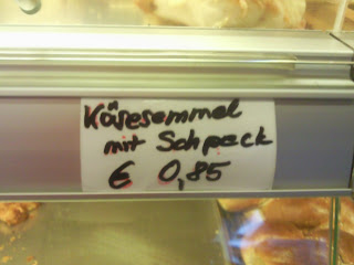 Ich habe mich als gebürtiges Nordlicht an dieses Wort „Semmel“ gewöhnt, kenne ich doch eigentlich die „Brötchen“. Das ist eben die „regionale Färbung“ und kann ich so hinnehmen. Aber ich war eigentlich der Meinung, dass nicht auch die Schreibweise von Wörtern regional unterschiedlich sei. Oder dass die Rechtschreibreform soweit greift, dass wirklich alles so geschrieben würde, wie man es spricht. Und dennoch: in einer Diskount-Bäckerei in München habe ich eine spannende Schreibweise von „Speck“ gefunden. Müsste es dann aber nicht auch „Sämmel“ heißen?